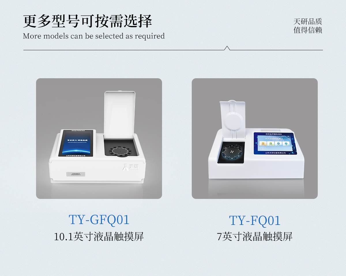 | 1、智能**且方便 | ①智能芯片:主控芯片采用ARM Cortex-A7,RK3288/4核處理器,搭配安卓智能操作系統(tǒng),集實(shí)驗(yàn)操作,分析結(jié)果,打印報(bào)告等功能于一體,使用方便,性能更強(qiáng)。 | ②大屏顯示:采用10.1英寸液晶觸摸屏,單機(jī)即可操作,無(wú)需連接外部顯示或控制器。 | ③多樣同檢:儀器具有12個(gè)檢測(cè)通道,可同時(shí)一次性檢測(cè)11個(gè)樣品,效率更高。 | ④工作預(yù)設(shè):具有任務(wù)預(yù)設(shè)模塊,一鍵提前預(yù)設(shè)樣品所有信息內(nèi)容。來(lái)樣時(shí)可直接檢測(cè),同時(shí)可多次調(diào)取。 | ⑤數(shù)據(jù)分析:設(shè)備首頁(yè)自動(dòng)匯總分析數(shù)據(jù),并繪制柱形分析圖,各項(xiàng)檢測(cè)數(shù)據(jù)一目了然,快捷直觀。 | ⑥高度集成:模塊高度集合,將分光光度模塊、數(shù)字化管理模塊、無(wú)線通訊模塊集成于一體??蓪z測(cè)結(jié)果進(jìn)行分析,直接上傳至數(shù)據(jù)平臺(tái),實(shí)現(xiàn)數(shù)據(jù)共享,方便后期進(jìn)行數(shù)據(jù)分析與統(tǒng)計(jì)。 | ⑦遠(yuǎn)程升級(jí):儀器具備遠(yuǎn)程升級(jí)功能,可遠(yuǎn)程升級(jí)程序,無(wú)需返廠,并可持續(xù)性免費(fèi)更新系統(tǒng)版本,降低成本及運(yùn)輸損耗風(fēng)險(xiǎn)。 | 2、檢測(cè)精準(zhǔn)且直觀 | ①**技術(shù):精密旋轉(zhuǎn)比色池,使用同芯片同光源校準(zhǔn)精度,解決不同光源之間存在波長(zhǎng)誤差的問(wèn)題,更加準(zhǔn)確**。 | ②結(jié)果直觀:儀器自動(dòng)對(duì)檢測(cè)結(jié)果與國(guó)標(biāo)限量值進(jìn)行對(duì)比,自動(dòng)判定結(jié)果是否合格,結(jié)果更直觀。 | 3、功能強(qiáng)大且實(shí)用 | ①存儲(chǔ)功能:設(shè)備可以存儲(chǔ)數(shù)據(jù)100000組,可在屏幕上直觀查看歷史數(shù)據(jù),可導(dǎo)出數(shù)據(jù)。 | ②打印功能:設(shè)備自帶打印功能,可對(duì)樣品信息及檢測(cè)結(jié)果無(wú)限次隨意打印。 | ③全新方式:新創(chuàng)自定義打印方式,可按需靈活勾選控制:二維碼,抽樣信息、檢測(cè)信息,受檢信息、復(fù)核信息、抽樣日期、檢測(cè)日期等信息的打印 | ④多重編輯:樣品信息可多重編輯,可以對(duì)每個(gè)通道屬性和樣品信息單獨(dú)進(jìn)行編輯,例如樣品信息、抽樣信息、檢測(cè)信息,受檢信息、復(fù)核信息、抽樣日期、檢測(cè)日期等信息等。 | ⑤雙語(yǔ)設(shè)計(jì):全中文/英文操作菜單,簡(jiǎn)單實(shí)用,適用于不同用戶的需求。 |
