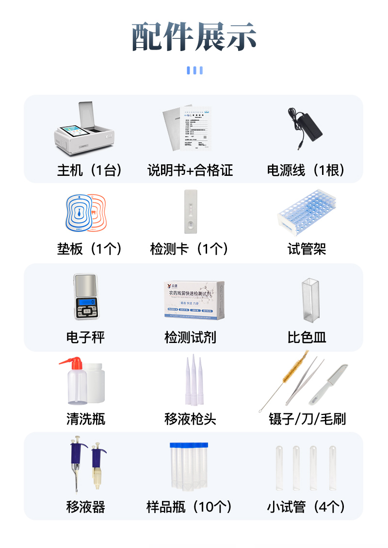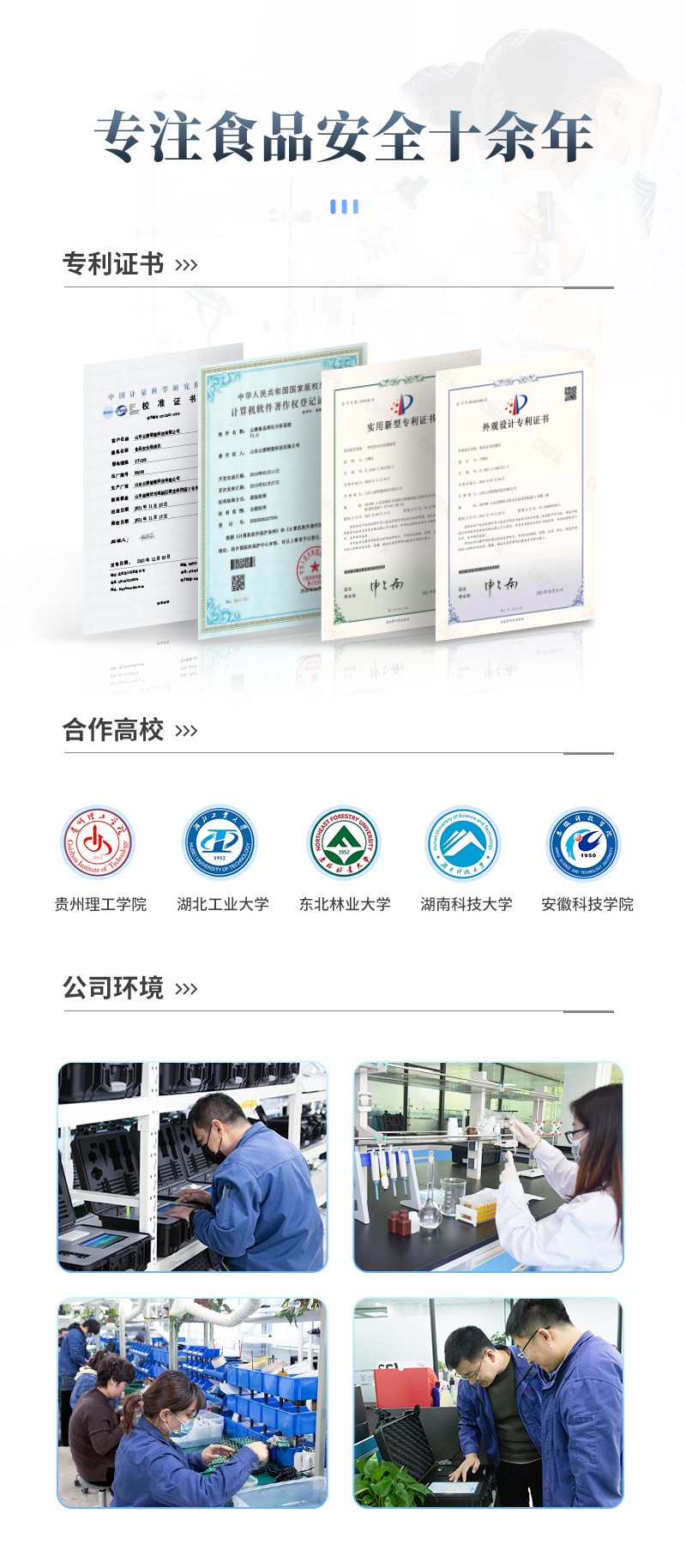 | 儀器采用臺(tái)式一體化系統(tǒng)檢測(cè)技術(shù),將分光光度模塊、新型農(nóng)殘檢測(cè)模塊、數(shù)字化管理模塊、無線通訊模塊高度集成于一體,支持檢測(cè)200種食品安全檢測(cè)項(xiàng)目,同時(shí)預(yù)留升級(jí)檢測(cè)方法。 | 儀器檢測(cè)模塊標(biāo)準(zhǔn)化、智能化,可隨意自由組合。檢測(cè)箱體內(nèi)置多個(gè)標(biāo)準(zhǔn)檢測(cè)單元,檢測(cè)模塊可以調(diào)整配置。 | 儀器采用全新安卓智能系統(tǒng),主控芯片采用 ARM Cortex-A7,RK3288/4核處理器,10.1寸高清液晶觸摸豎屏,更加**的UI交互界面,運(yùn)轉(zhuǎn)快捷;儀器配備無線通信模塊: 4G(APN)通訊模塊、Wifi模塊,藍(lán)牙傳輸,同時(shí)具有雙USB接口以及RJ45接口能以多種方式實(shí)現(xiàn)數(shù)據(jù)保存和數(shù)據(jù)傳輸功能。 | 創(chuàng)新檢測(cè)模式: | ★檢測(cè)通道:≥12通道;采用精密旋轉(zhuǎn)比色池設(shè)計(jì),使用同芯片同光源校準(zhǔn)精度,解決不同光源之間的誤差值。1-12通道間誤差0.1%。(**號(hào):ZL202022821055.2) | ★儀器具有自動(dòng)識(shí)別比色皿檢測(cè)功能,即:將樣品比色皿放入儀器后,點(diǎn)擊樣品檢測(cè),儀器自動(dòng)識(shí)別比色皿進(jìn)行通道檢測(cè)。 | 進(jìn)口高精光源: | 高精度進(jìn)口四波長冷光源,通道配置 410、520、590、630nm 波長光源,一個(gè)光源芯片驅(qū)動(dòng)一個(gè)光源,誤差極小,每臺(tái)設(shè)備單獨(dú)**校準(zhǔn)光源,**比對(duì),同時(shí)參照四種不同波段光源全方位覆蓋市面上99%的農(nóng)殘食品項(xiàng)目檢測(cè)。 | 智能化操作系統(tǒng): | 便捷操作系統(tǒng):設(shè)備檢測(cè)時(shí)可在同一檢測(cè)界面自動(dòng)對(duì)應(yīng)相關(guān)檢測(cè)通道一次性選擇1-12個(gè)樣品名稱,無須退出界面,節(jié)省操作時(shí)間。 | 數(shù)據(jù)集成系統(tǒng):設(shè)備首頁自動(dòng)統(tǒng)計(jì)檢測(cè)數(shù)據(jù)包含:周檢測(cè)數(shù)據(jù)、月檢測(cè)數(shù)據(jù),全部檢測(cè)總數(shù)量,均包含檢測(cè)總數(shù),合格數(shù),不合格數(shù),以及相關(guān)柱形分析圖,對(duì)各項(xiàng)檢測(cè)數(shù)據(jù)清晰掌握,無需電腦查詢,更加快捷直觀。 | 項(xiàng)目預(yù)設(shè)系統(tǒng):支持添加單個(gè)及多個(gè)相同或不相同的任務(wù)預(yù)設(shè),一鍵快速調(diào)取,每一個(gè)任務(wù)分別可以設(shè)置不同的樣品、批次、編號(hào)、來源、備注、抽樣信息、檢測(cè)信息、受檢信息、復(fù)核信息等更多信息。無縫鏈接平臺(tái)和APP實(shí)時(shí)查看下發(fā)任務(wù)。 | 數(shù)據(jù)監(jiān)管系統(tǒng):同步對(duì)接監(jiān)管平臺(tái),數(shù)據(jù)可局域網(wǎng)和互聯(lián)網(wǎng)數(shù)據(jù)上傳,檢測(cè)結(jié)果可選擇直接傳至食品安全監(jiān)管平臺(tái)。集成OSS輸出存儲(chǔ)服務(wù)、區(qū)分設(shè)備定向管理應(yīng)用,進(jìn)行區(qū)域食品安全監(jiān)管及大數(shù)據(jù)分析處理與數(shù)據(jù)統(tǒng)計(jì),檢測(cè)區(qū)域食品安全長短期動(dòng)態(tài),達(dá)到食品安全問題預(yù)估、預(yù)警。 | 自定義打印系統(tǒng):內(nèi)置全新打印系統(tǒng),新創(chuàng)自定義打印方式,可按需靈活設(shè)置開啟或關(guān)閉:產(chǎn)品合格證(國家農(nóng)業(yè)部標(biāo)準(zhǔn)要求),二維碼,抽樣信息、檢測(cè)信息,受檢信息、復(fù)核信息、抽樣日期、檢測(cè)日期等信息的打印。 | 系統(tǒng)遠(yuǎn)程更新功能:可定向分客戶分儀器更新系統(tǒng),按照不同客戶后期實(shí)際需求添加項(xiàng)目,無需機(jī)器返廠,即可遠(yuǎn)程實(shí)時(shí)升級(jí)全新系統(tǒng),節(jié)省時(shí)間成本及避免運(yùn)輸造成設(shè)備損壞。 | 儀器主機(jī)采用一體化防水、抗壓、防撞擊、防腐蝕箱體設(shè)計(jì),同時(shí)配備交直流供電,可連接車載電源,可選配大容量充電鋰電池,滿足現(xiàn)場(chǎng)野外檢測(cè)需求。 | 安全證書,放心保障:儀器具有中國計(jì)量科學(xué)研究院校準(zhǔn)證書,**認(rèn)證。 |