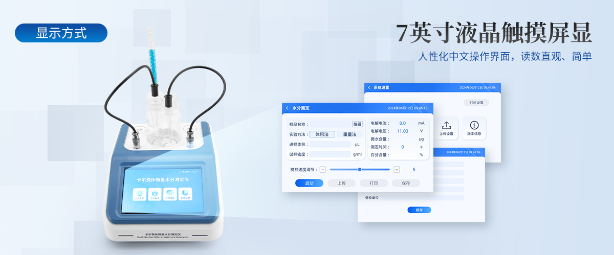 | 1.采用了原裝進口7.0英寸800*480像素真彩TFT-LCD大屏幕彩色顯示器,鍵盤采用人體感應式觸摸屏,全中文操作界面,軟件界面顯示直觀大方,內(nèi)容豐富,操作內(nèi)容方便自如,漢字提示,靈活、具有檢測靈敏閾高、操作簡單、測試速度快、重復性好等特點. | 2.儀器具有試驗結(jié)果存儲、打印、計算功能;樣品測定過程由儀器自動控制,攪拌、測定60秒左右自動完成,直接顯示測定結(jié)果;全密封滴定池瓶,避免試劑與人接觸,也避免環(huán)境濕度的影響;儀器中文液晶顯示,并具有自動計算和打印功能,能打印出百分含量、樣品編號、試驗員、實驗日期等內(nèi)容;儀器準確度為:①水含量小于10微克水時,測量值誤差小于2ug水;②水含量在10微克-1000微克水時,測量誤差≤2ug水;③水含量在1000微克以上時,測量值誤差≤0.2%(不含進樣誤差); | 3.核心主機采用TI 公司AM3354處理器,Cortex-A8內(nèi)核,1GHz主頻;操作系統(tǒng)采用Windows Embedded Compact 7實時工控系統(tǒng)。徹底擯棄了無核無操裸奔的單片機,真正實現(xiàn)了儀器操控的現(xiàn)代化,使儀器步入新的智能時代。 |