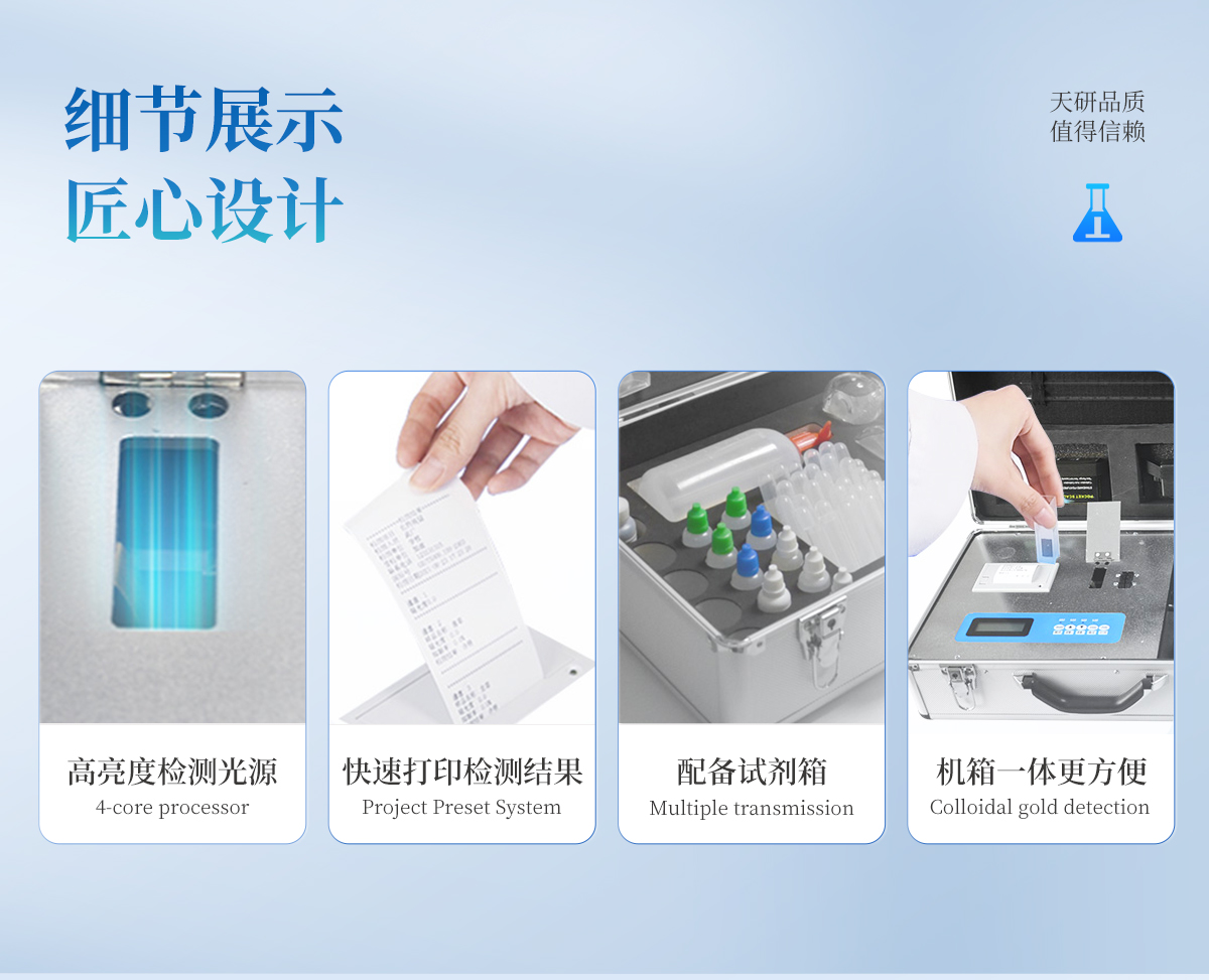 | 全國獨家《機箱/藥劑一體式鋁合金機箱》**設(shè)計,便于攜帶、堅固耐用,配套檢測方法及成品藥劑。 | 微電腦控制,數(shù)字化線路、程序化設(shè)計,液晶顯示,交直流兩用,測試數(shù)據(jù)可存儲查詢,可野外流動測試,**程度降低操作者的失誤和勞動強度。 | 分辨率:0.001,觸摸式按鍵,內(nèi)置新一代熱敏打印機,可打印測試結(jié)果。 | 復合肥養(yǎng)分含量檢測儀可檢測化肥、有機肥(含葉面肥、水溶肥、噴施肥)生物肥等中的速效氮、速效磷、有效鉀、全氮、全磷、全鉀、有機質(zhì)、酸堿度,鈣、鎂、硫、鐵、錳、硼、鋅、銅、氯、硅、鉬等各種中微量元素以及鉛、鉻、鎘、汞、砷、鎳、鋁、氟、鈦、硒等各種重金屬含量。 | 采用高亮LED光源,濾光式處理,保證光源波長穩(wěn)定, 硅半導體作為信號接收系統(tǒng), 壽命長達10萬小時級別。光源穩(wěn)定,重現(xiàn)性好,準確度高。 | 比色槽部分采用單通道設(shè)計,無機械位移及磨損,光路測試定位**,保證測定結(jié)果精度。 |