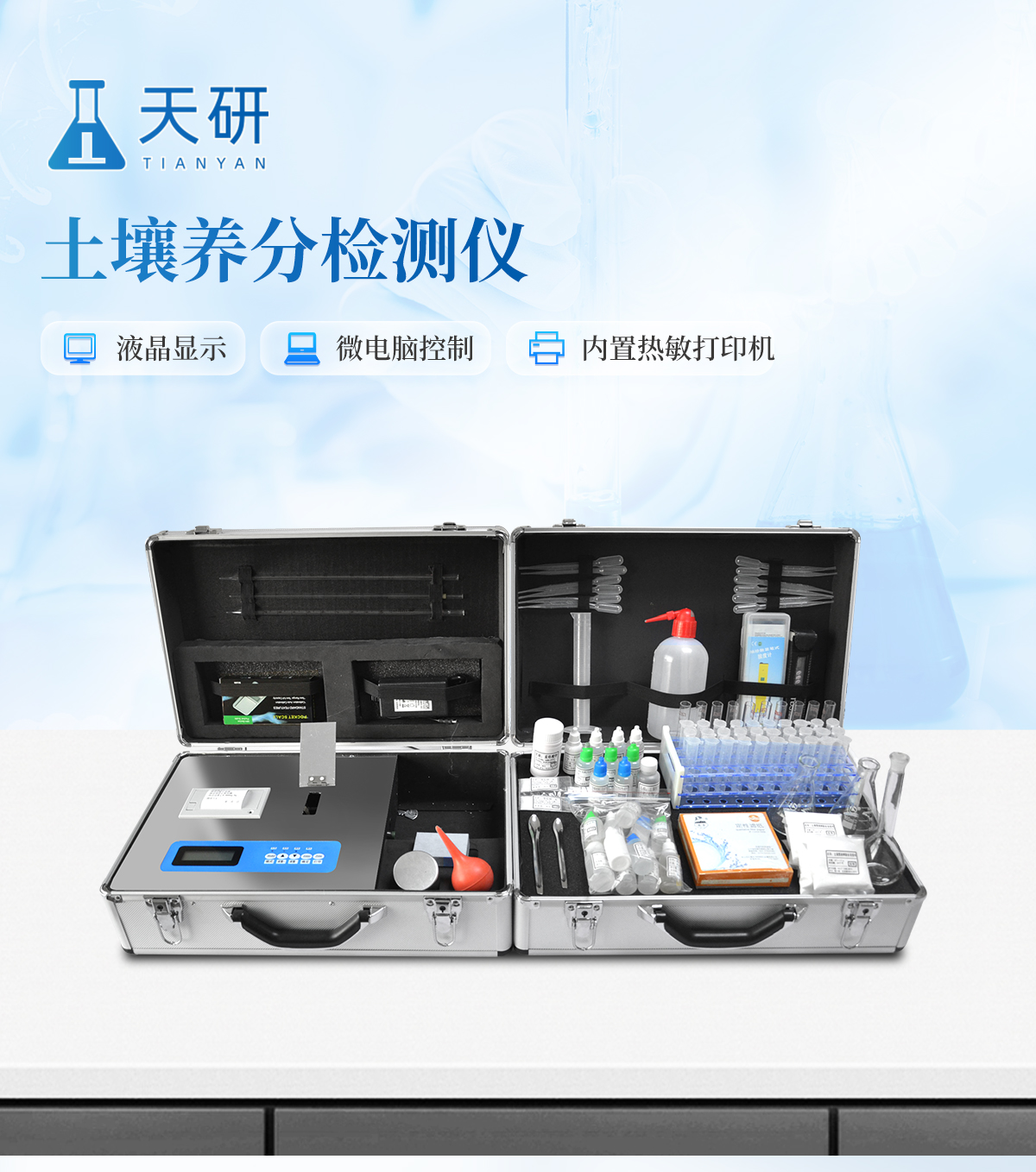 | 儀器整機質(zhì)保一年,終身免費維修服務,免費郵寄儀器、免費培訓。 | 終身免費提供土肥等農(nóng)業(yè)相關(guān)技術(shù)支持! | 配置清單(兩個鋁合金箱子): |