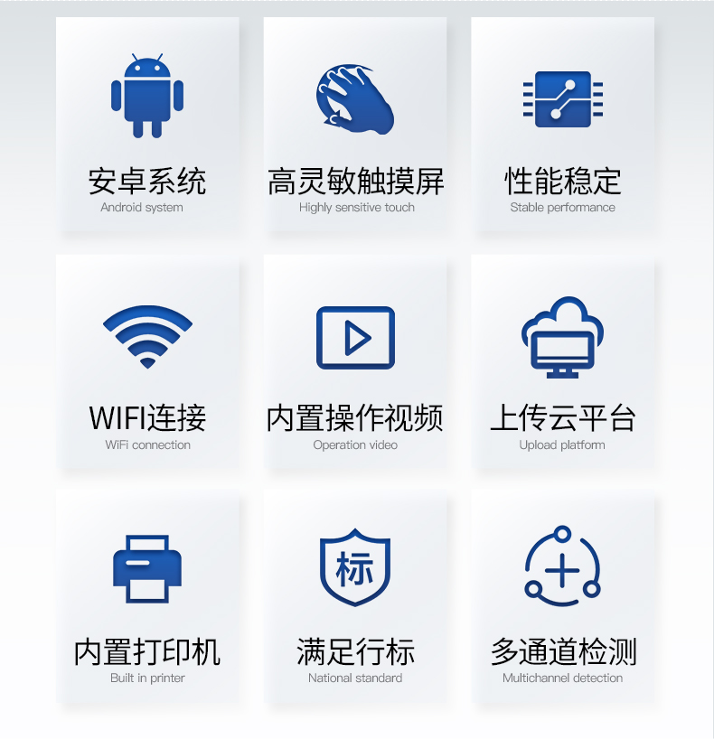 | 儀器透射比準確度 ≥±0.3% | 儀器重復性 ≤±0.5% | 儀器穩(wěn)定性 ≤0.003A/3分鐘(儀器預熱5分鐘后) | 線性誤差 ≤3% | 儀器功耗 ≤5W | 電源 AC220V/50Hz或DC12V | 結(jié)果輸出 內(nèi)置熱敏打印機可自動打印出檢測結(jié)果,方便直觀。 |