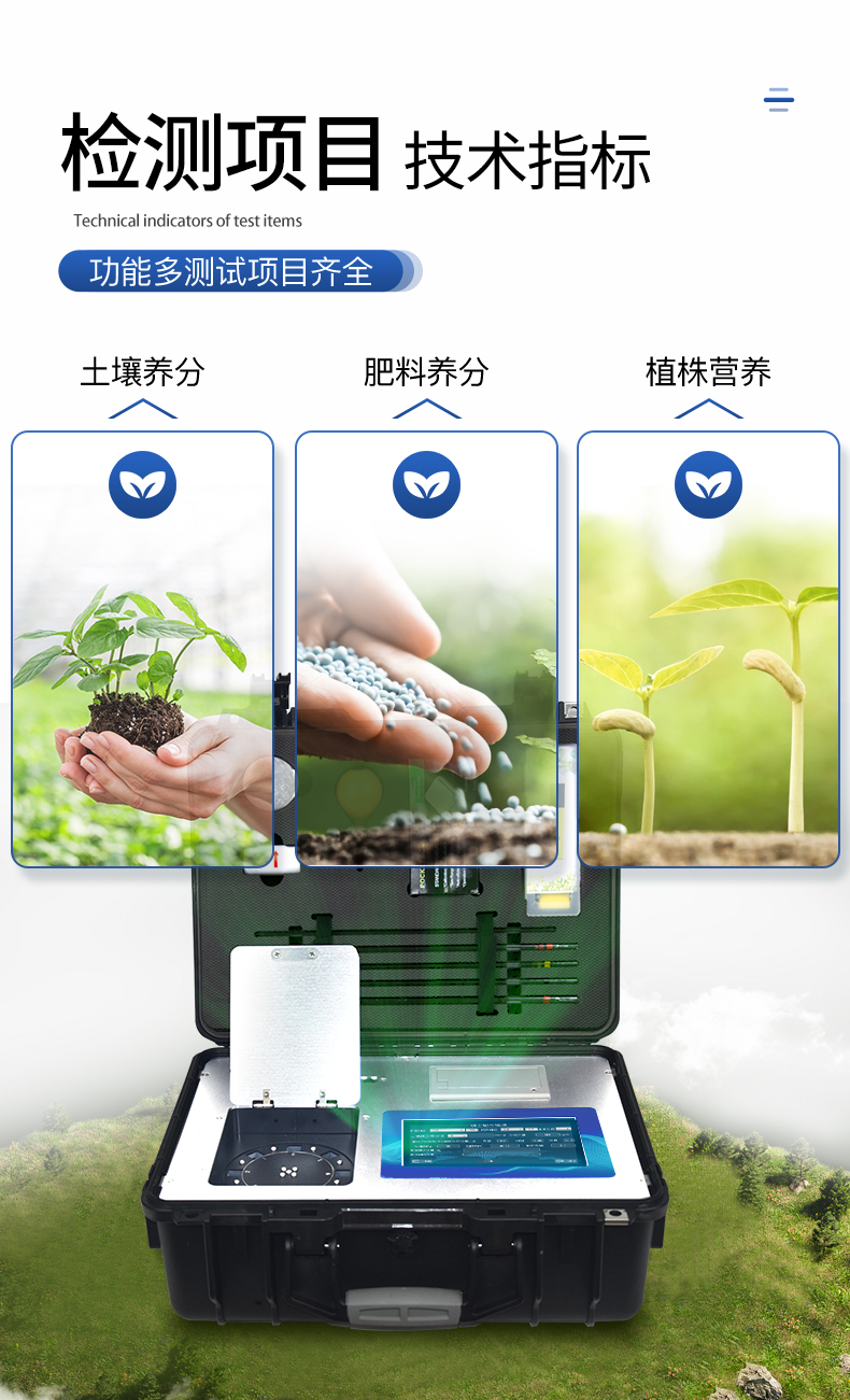 | 儀器測定項目:測定土壤、肥料、食品、蔬菜、水果中重金屬(鉛、砷、鉻、鎘、汞、鐵、鋅、錳、銅)。 | 儀器擴展測試項目:儀器可以擴展測定土壤、肥料養(yǎng)分含量。 |