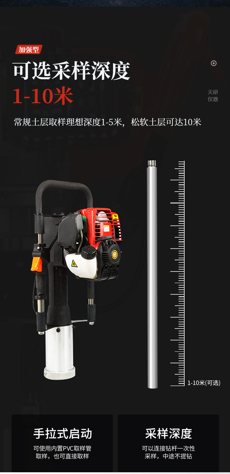 動(dòng)力(汽油)土壤采樣器(汽油動(dòng)力土鉆)土壤采樣器是本廠汲取廣大客戶(hù)意見(jiàn)、經(jīng)多方用戶(hù)需求和市場(chǎng)調(diào)研,開(kāi)發(fā)出的一款動(dòng)力(汽油)土壤采樣器。儀器采用汽油機(jī)驅(qū)動(dòng)、以大幅減免土壤取樣人員的勞動(dòng)力和快速、取樣簡(jiǎn)便而著稱(chēng)。