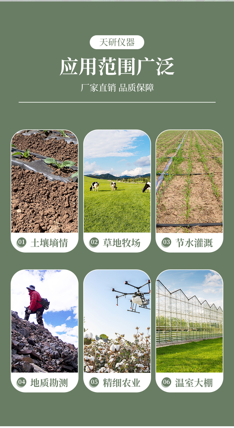 土壤水分測(cè)定儀采用FDR頻域反射原理,快速準(zhǔn)確測(cè)量土壤中含水量,可對(duì)多處樣地、不同土壤深度的水分含量進(jìn)行快速檢測(cè)和長(zhǎng)期連續(xù)監(jiān)測(cè)。廣泛應(yīng)用于土壤墑情檢測(cè)、旱作節(jié)水灌溉、精細(xì)農(nóng)業(yè)、林業(yè)、地質(zhì)勘探、植物培育等領(lǐng)域。